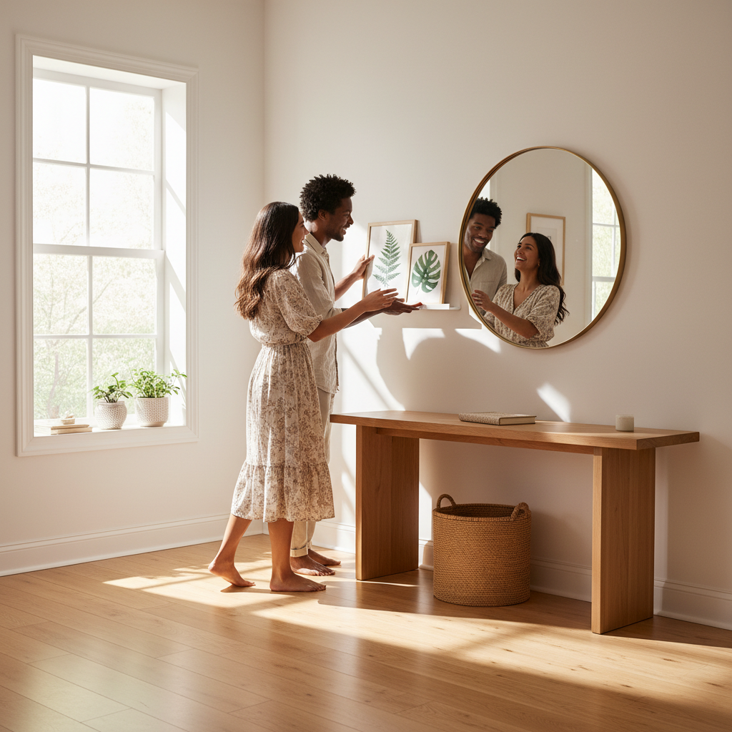 - Busy entrance: keep artwork simple and add one textured element (a sculptural wall hook or a textile piece).